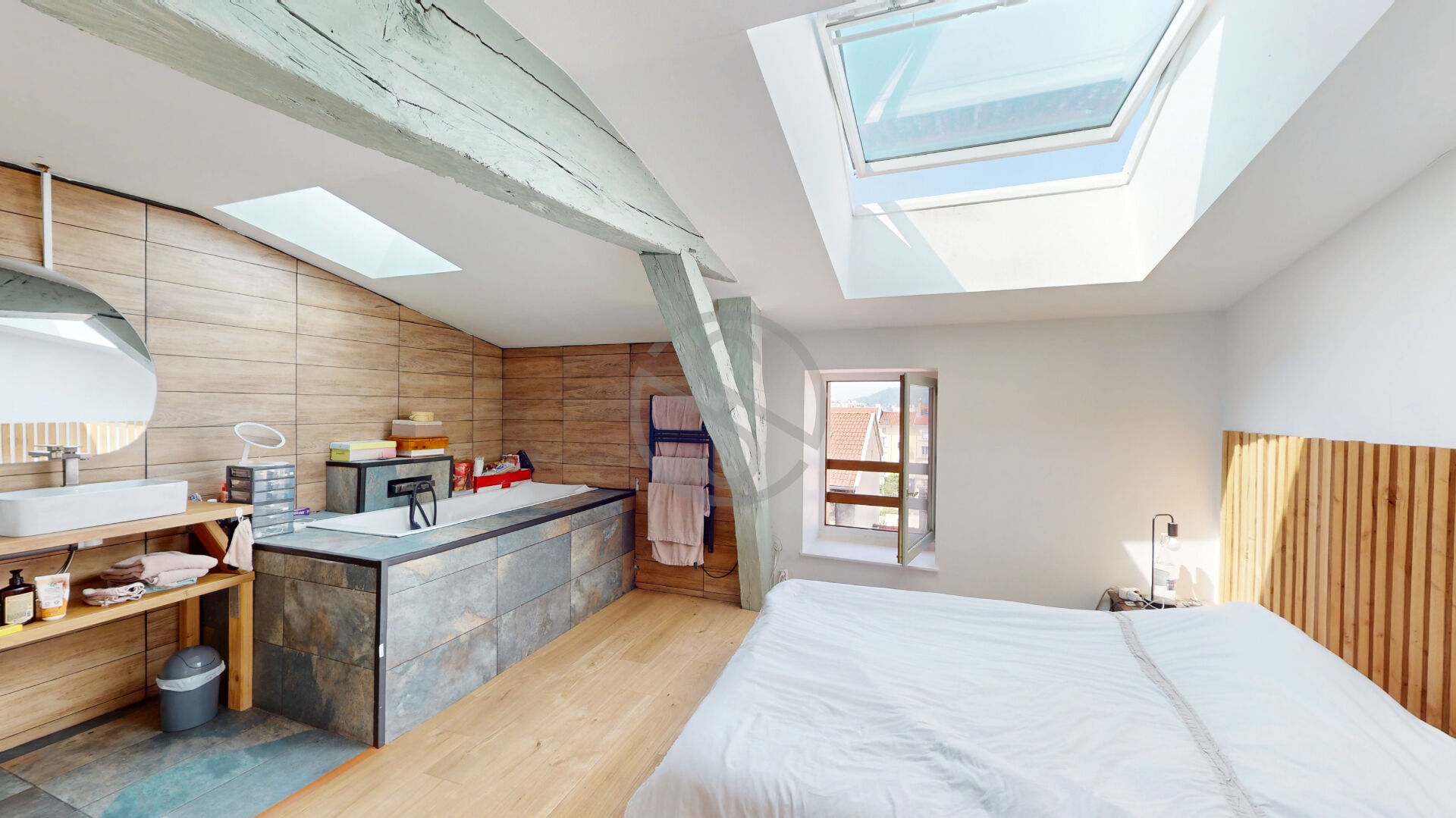 – Deux grandes chambres de 30 m² et 20 m², dont une superbe suite parentale avec salle de bain (douche + baignoire) et dressing intégré