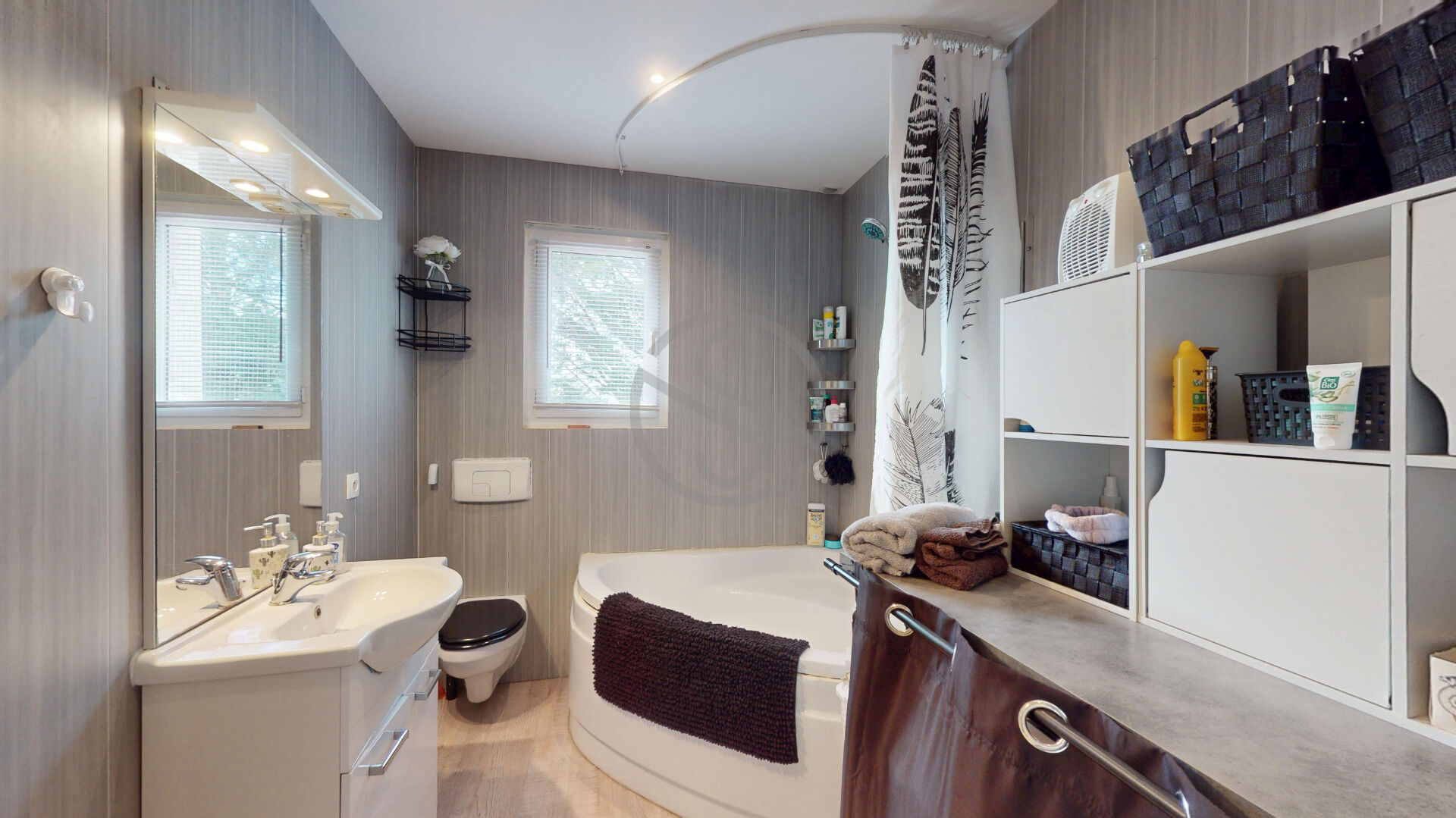 A l’étage, une grande mezzanine offrant de multiples possibilités d’aménagement, deux chambres spacieuses et un second WC.
