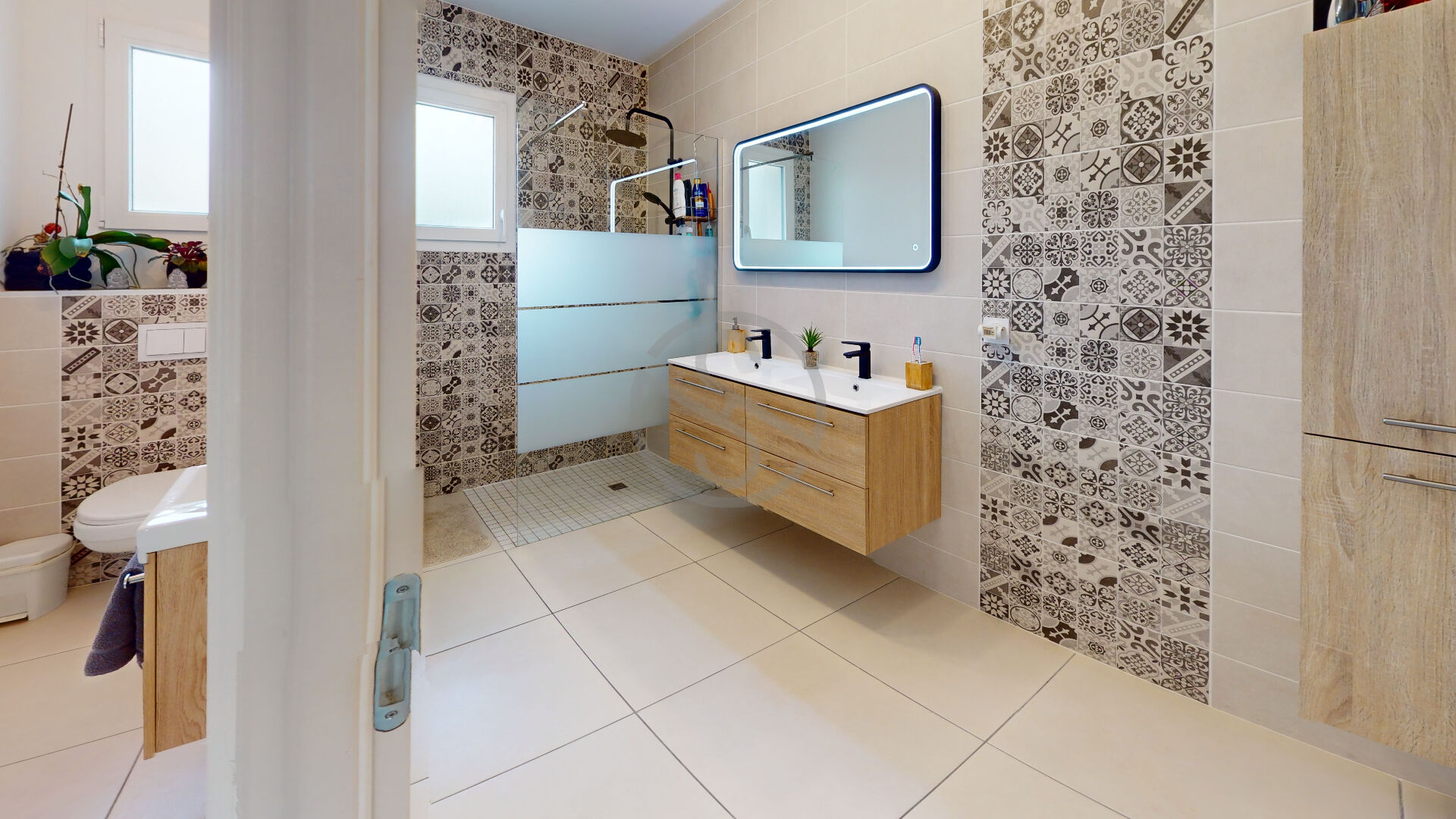 -1 grande salle de bain avec douche à l’italienne et double vasque