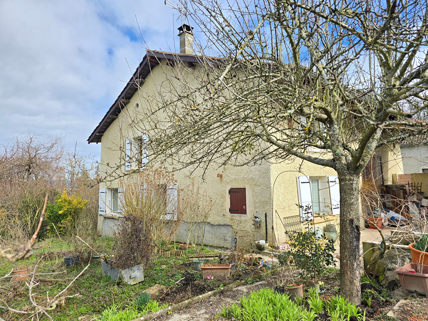 A l’extérieur, une grange attenante (non accessible en voiture) et deux abris de jardin complètent le tout.