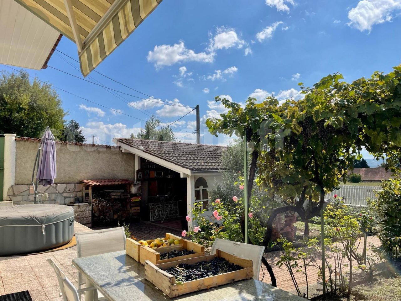 Orienté plein sud, vous bénéficierez d?un terrain entièrement clos, aménagé et arboré. Vous profiterez des beaux jours avec sa spacieuse terrasse et de son espace cuisine d?été (couvert).