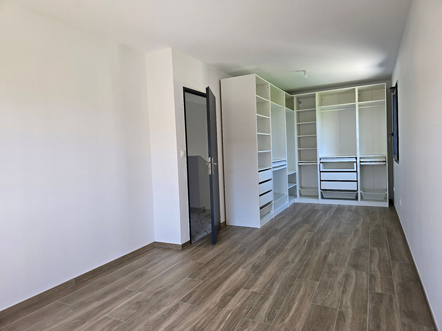 Au 1er étage, 2 chambres de 11 et 21m2 avec dressing. Une salle de bain avec baignoire et douche à l’italienne, toilette, double vasque, miroir lumineux.