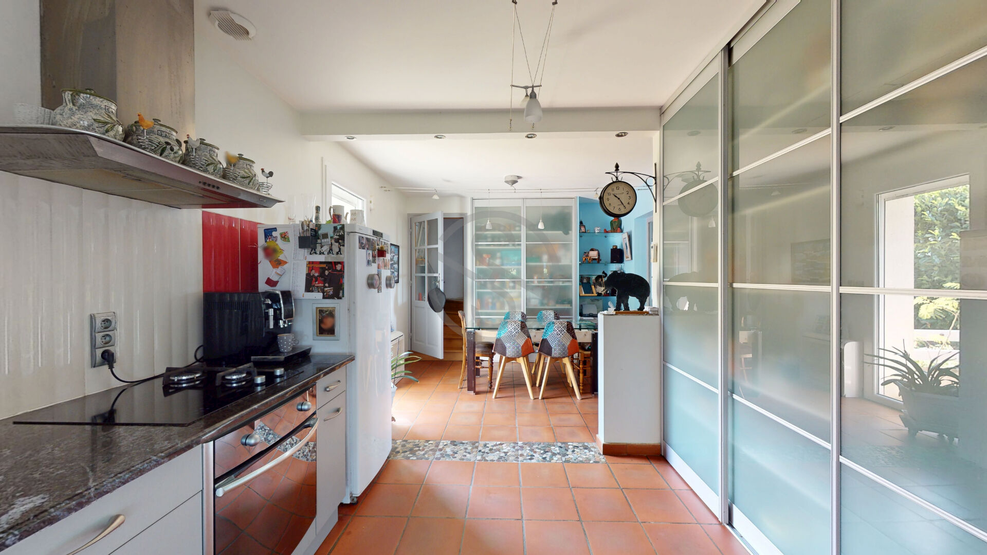 Une pièce de vie de 42 m2 avec cuisine semi-ouverte de 22 m2, 3 chambres, une salle de bain et un WC.