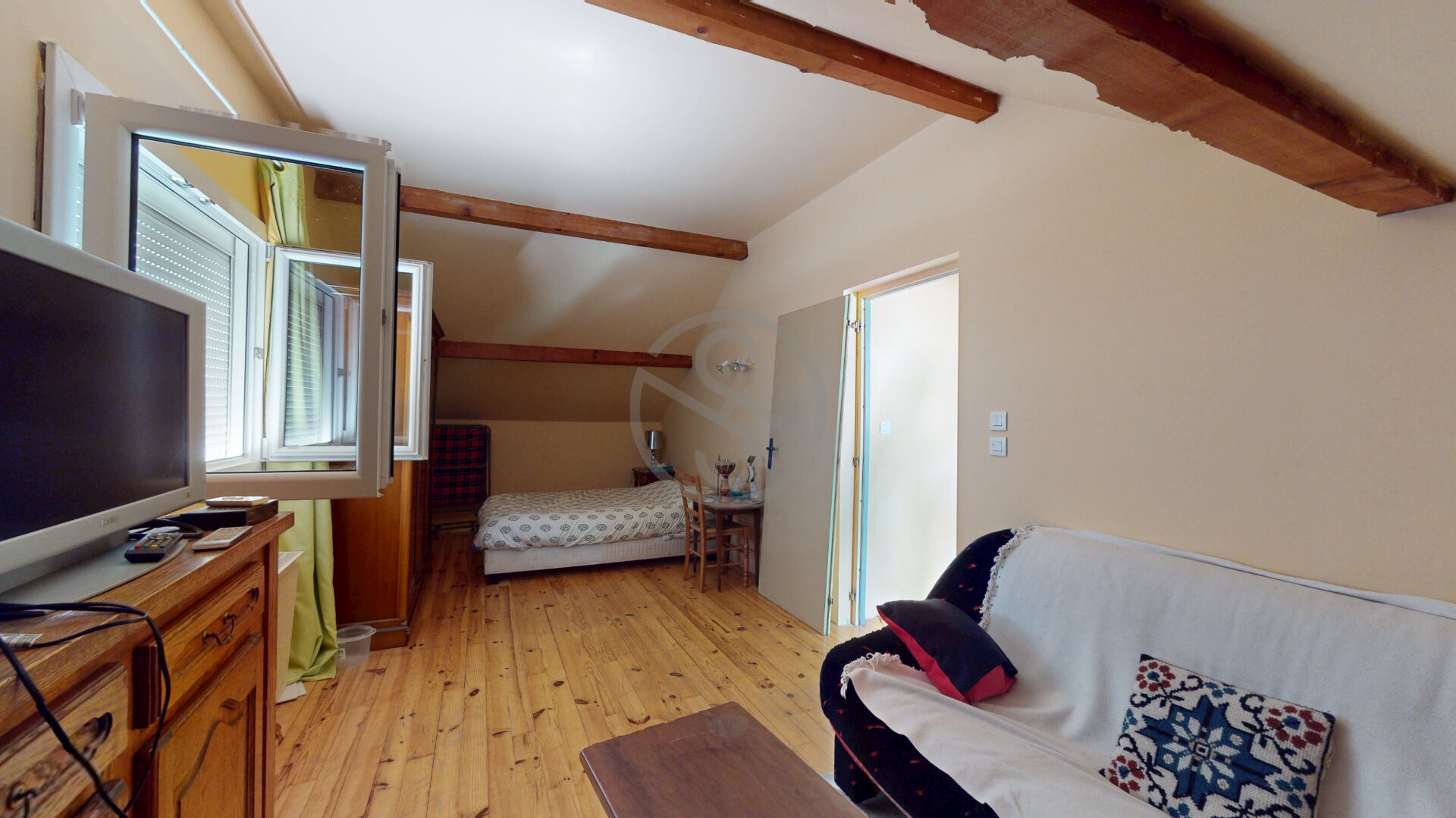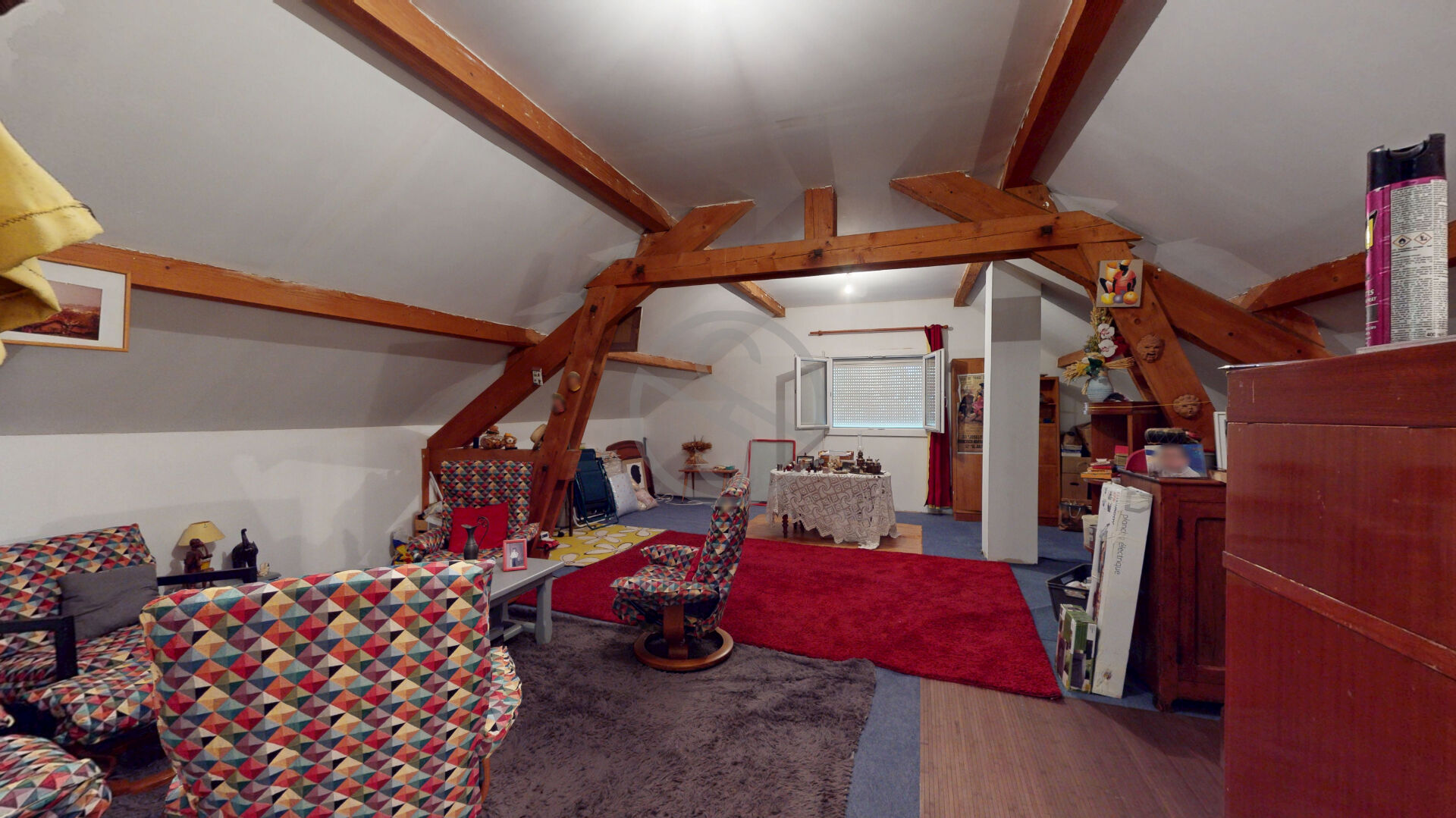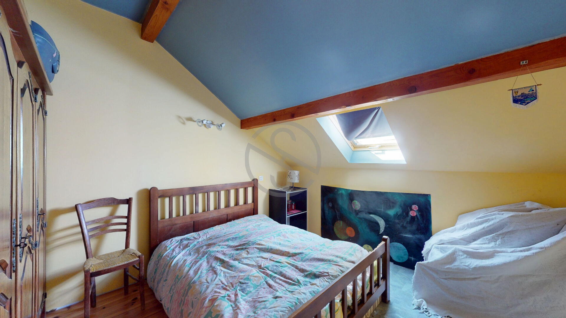 A l’étage, un espace ouvert de 60 m2 ! 2 chambres, une salle d’eau et un WC.