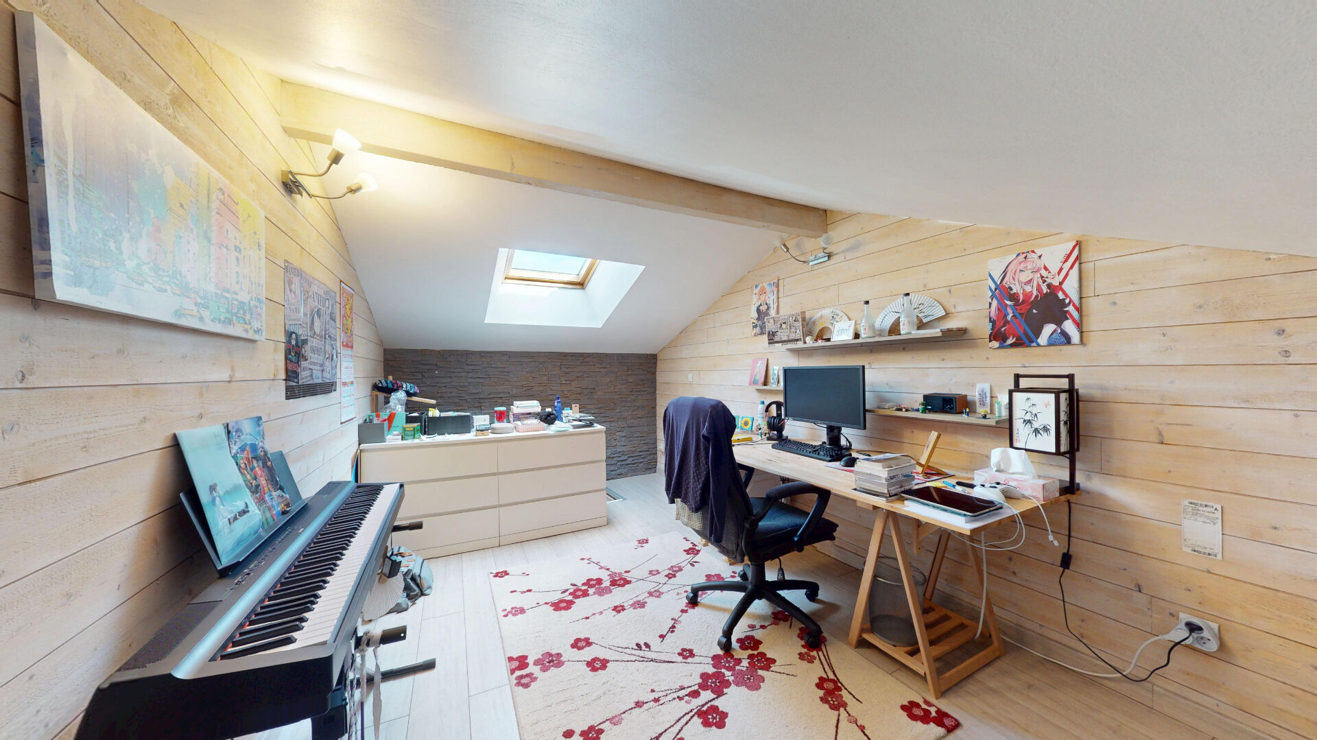 une spacieuse chambre sous combles, baignée de lumière.