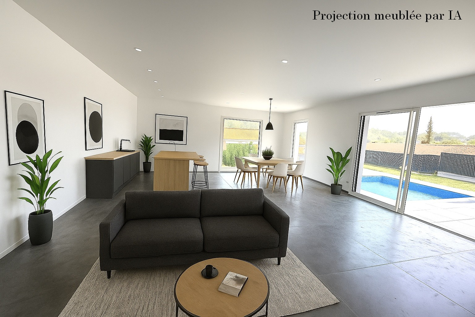 – Pièce de vie spacieuse de 50 m² baignée de lumière grâce à ses grandes baies vitrées, avec accès direct à la terrasse et à la piscine neuve de 10 m²