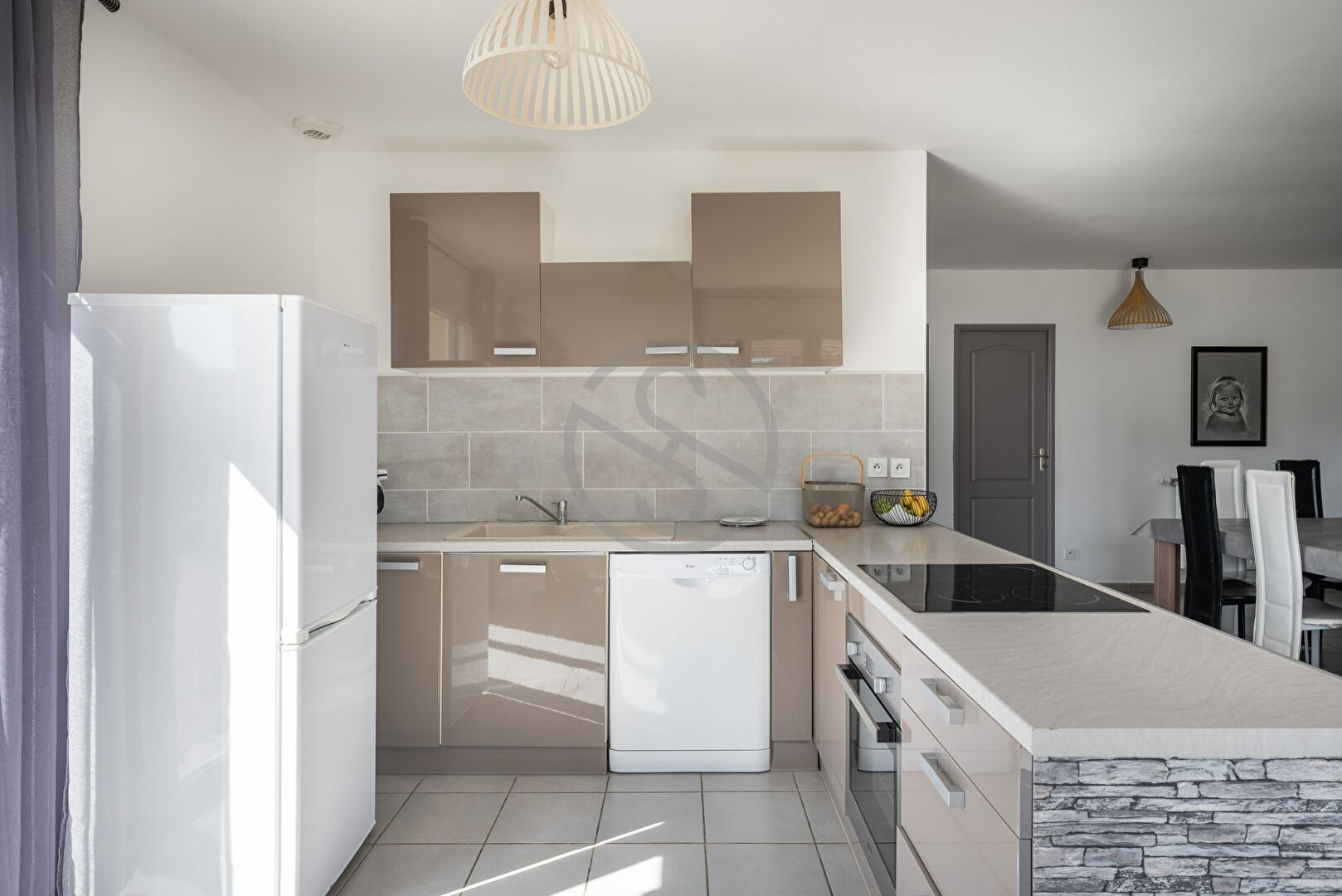 -Une pièce de vie traversante de 55 m², baignée de lumière, avec cuisine ouverte moderne, salon chaleureux et espace repas convivial.