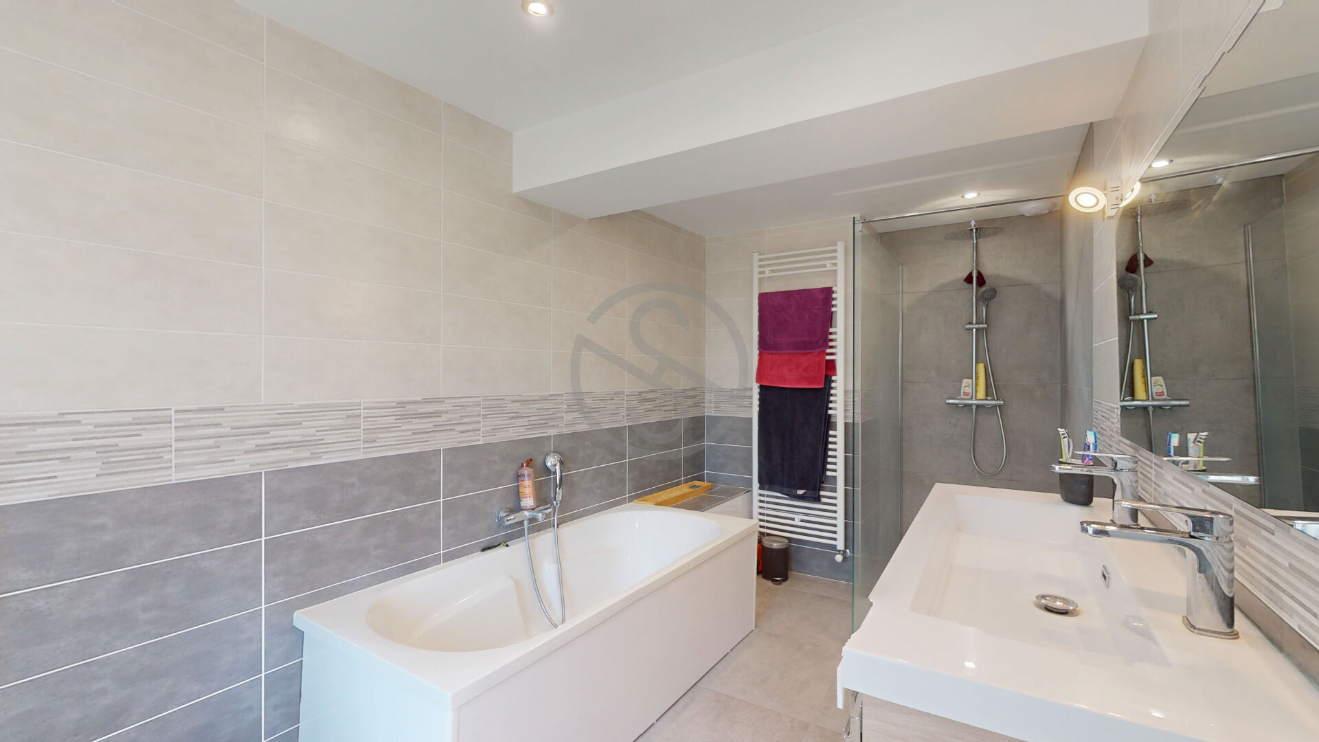 -Grande salle de bain avec douche et baignoire + WC séparé