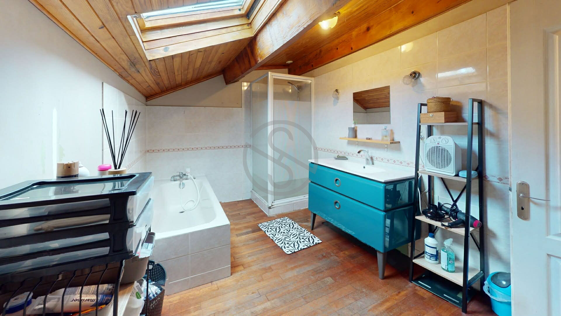 – Une salle de bain avec douche et baignoire