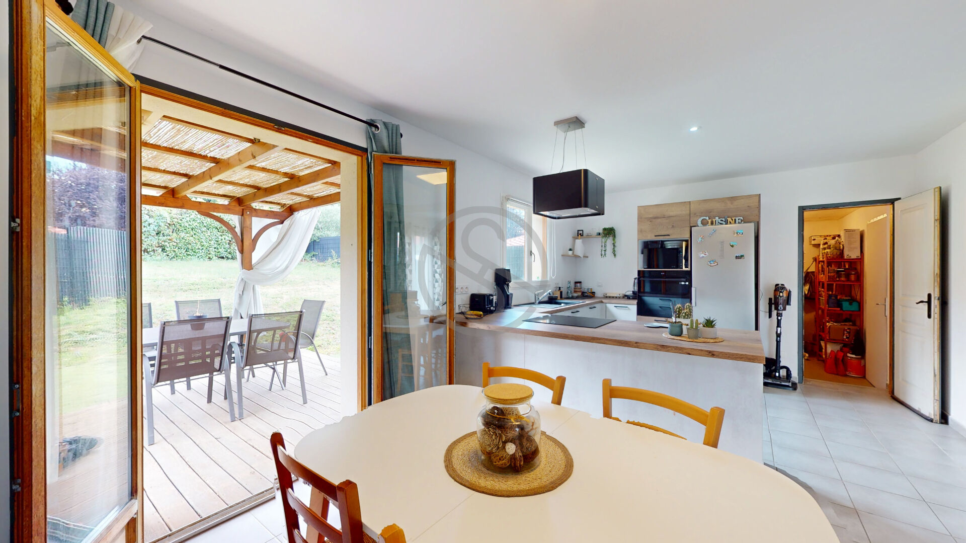 Au rez-de-chaussée, vous serez séduits par une vaste pièce de vie lumineuse ouverte sur une cuisine moderne et entièrement équipée, idéale pour partager de beaux moments en famille ou entre amis.
