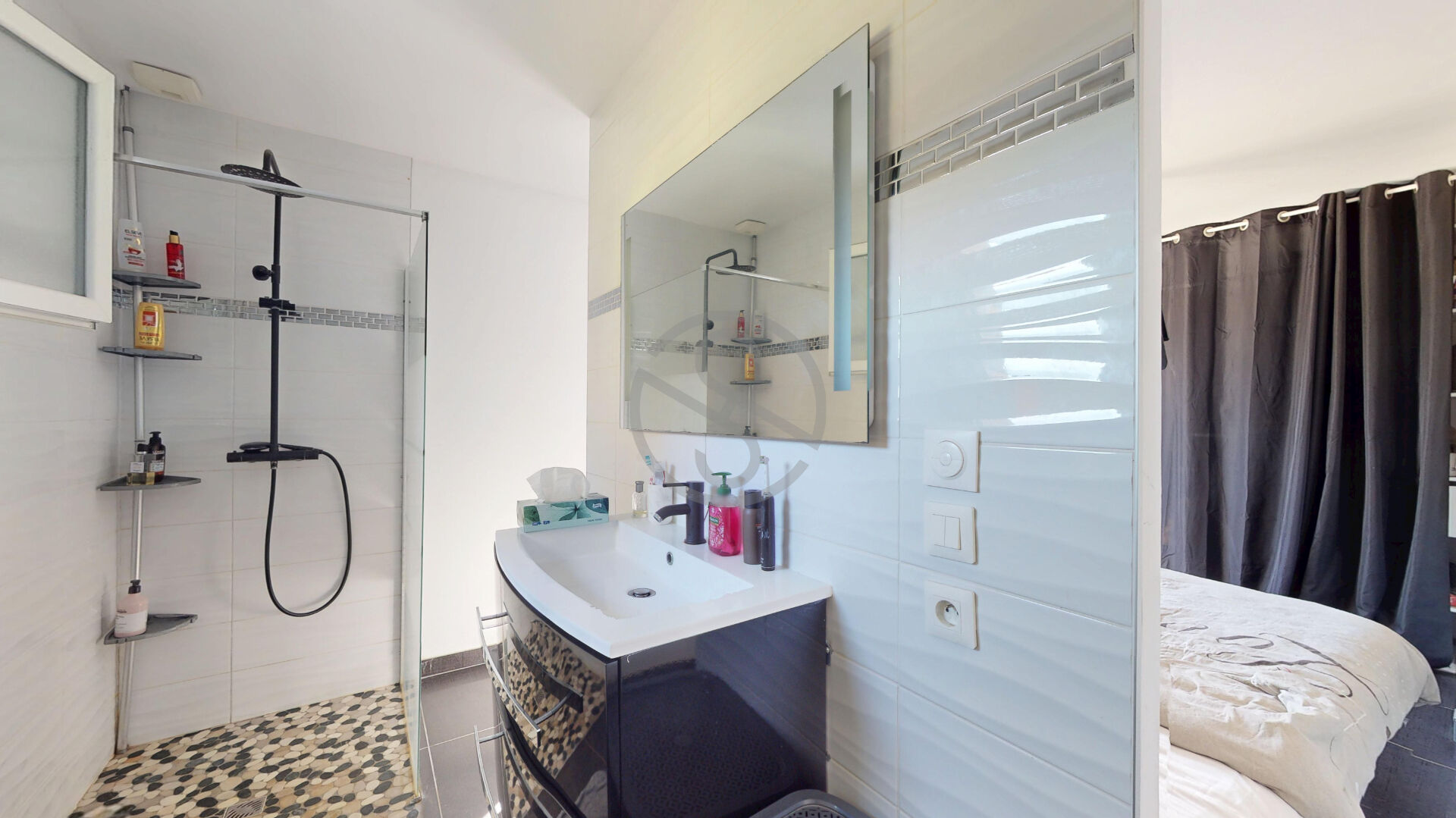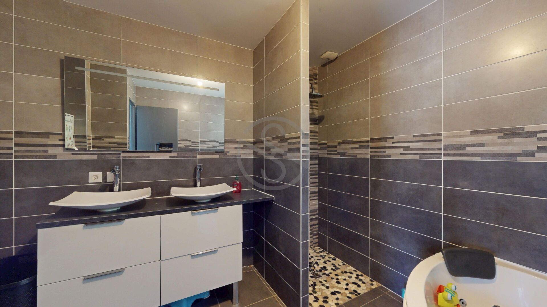 L’extérieur vous offrira quand à lui plus de 1044 m2 de terrain avec ses terrasses côté SUD OUEST et celle côté SUD EST de 50 m2 avec sa piscine semi-enterrée.