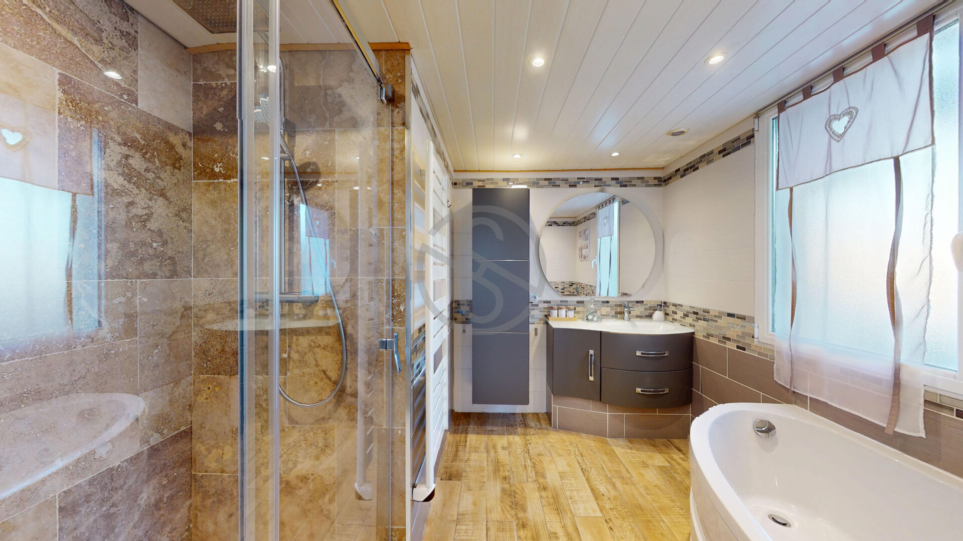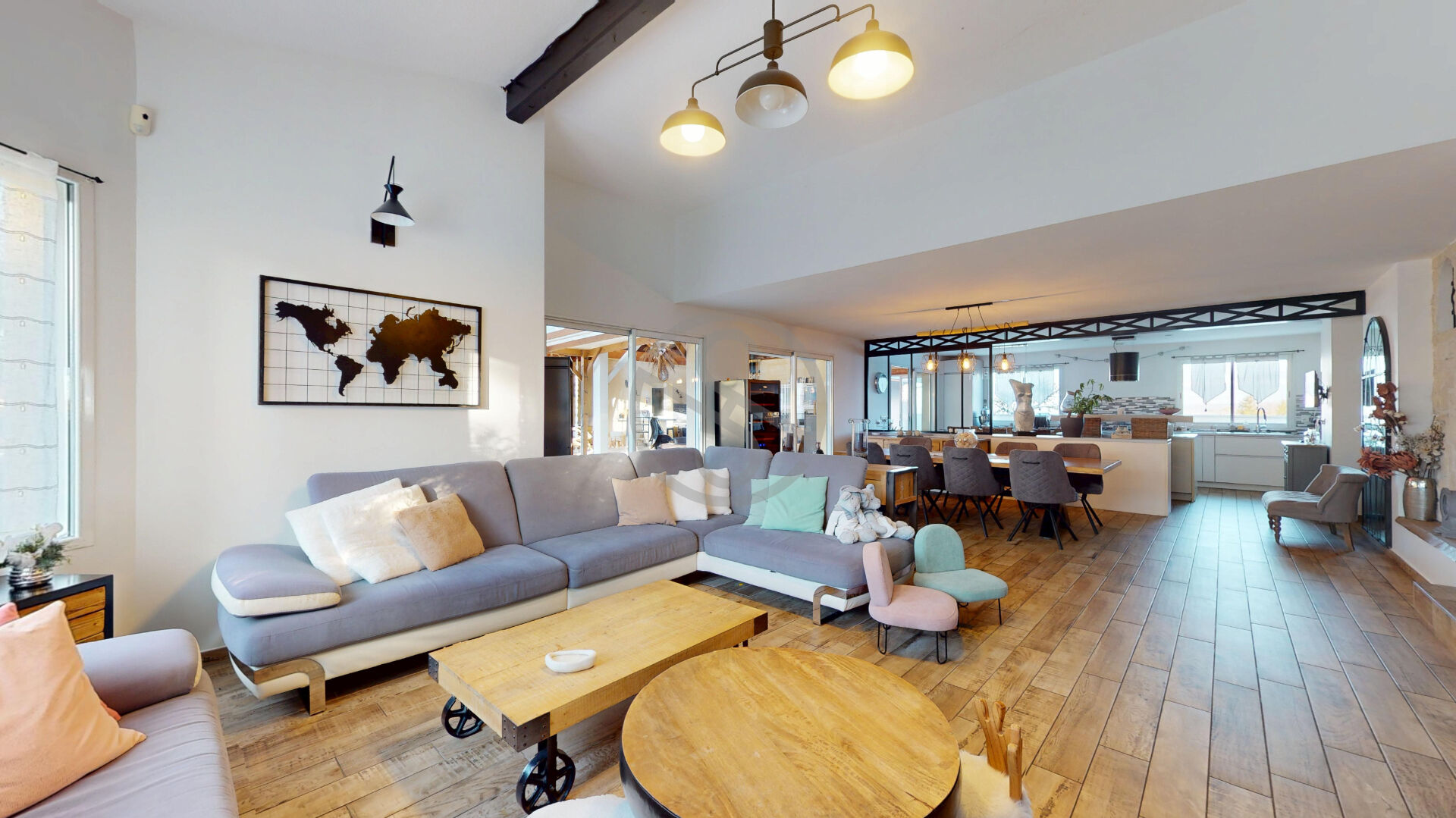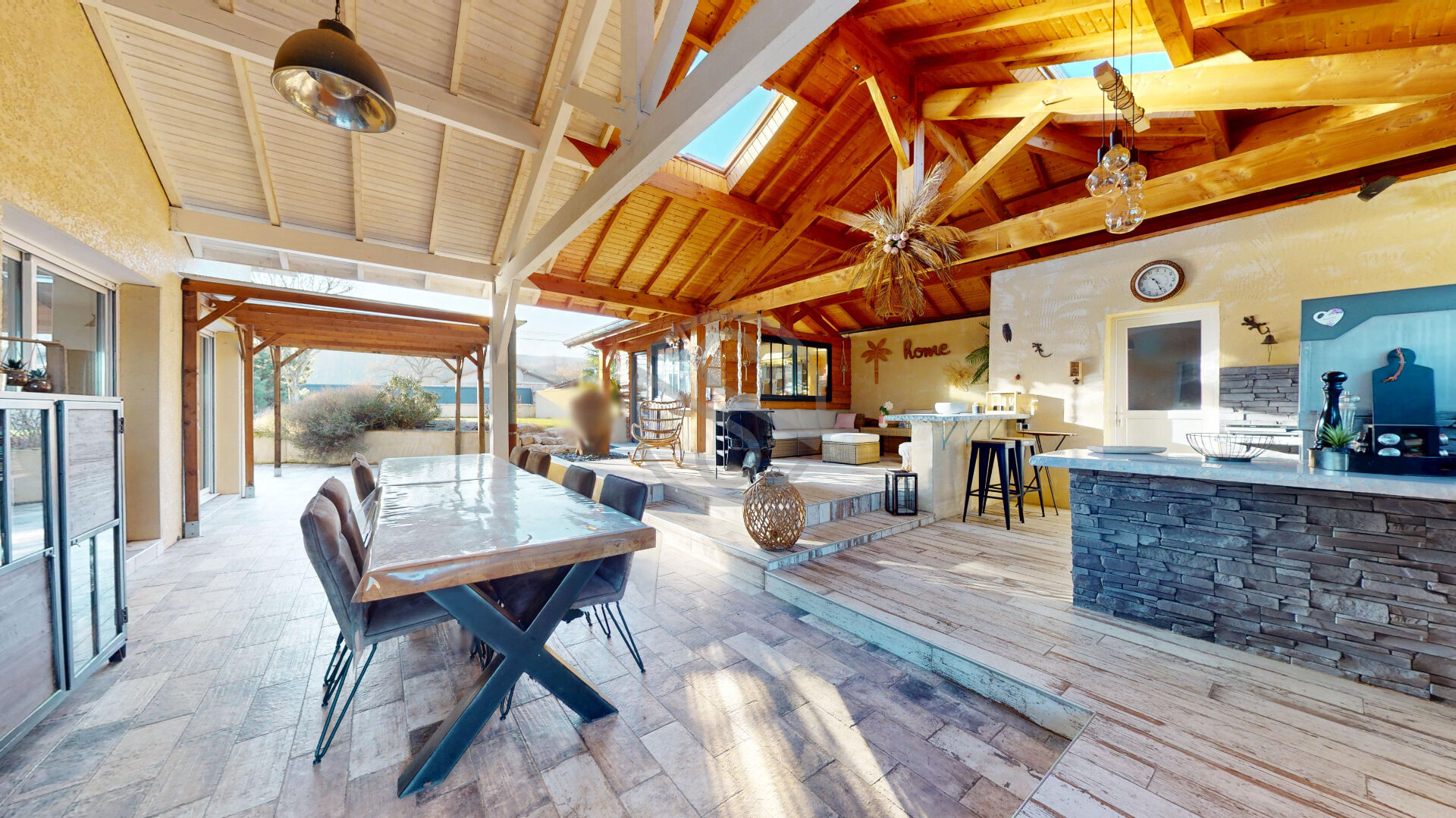Dès l’entrée la maison séduit par un splendide espace de vie où se mêlent harmonieusement séjour salon et cuisine ouverte entièrement équipée et aménagée, les volumes la luminosité et la qualité des matériaux confèrent à cet espace une atmosphère élégante conviviale et contemporaine idéale pour la vie quotidienne comme pour recevoir